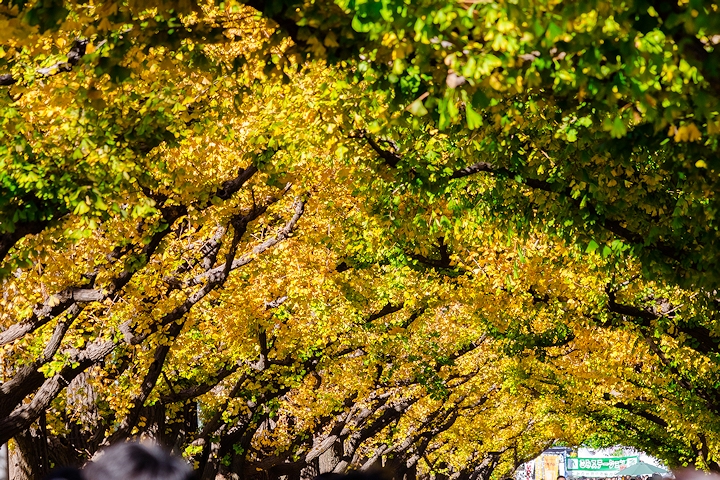 イチョウのトンネル。人が映っているので下をトリミング。