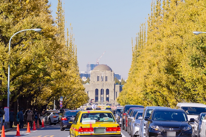 神宮外苑でイチョウの撮影